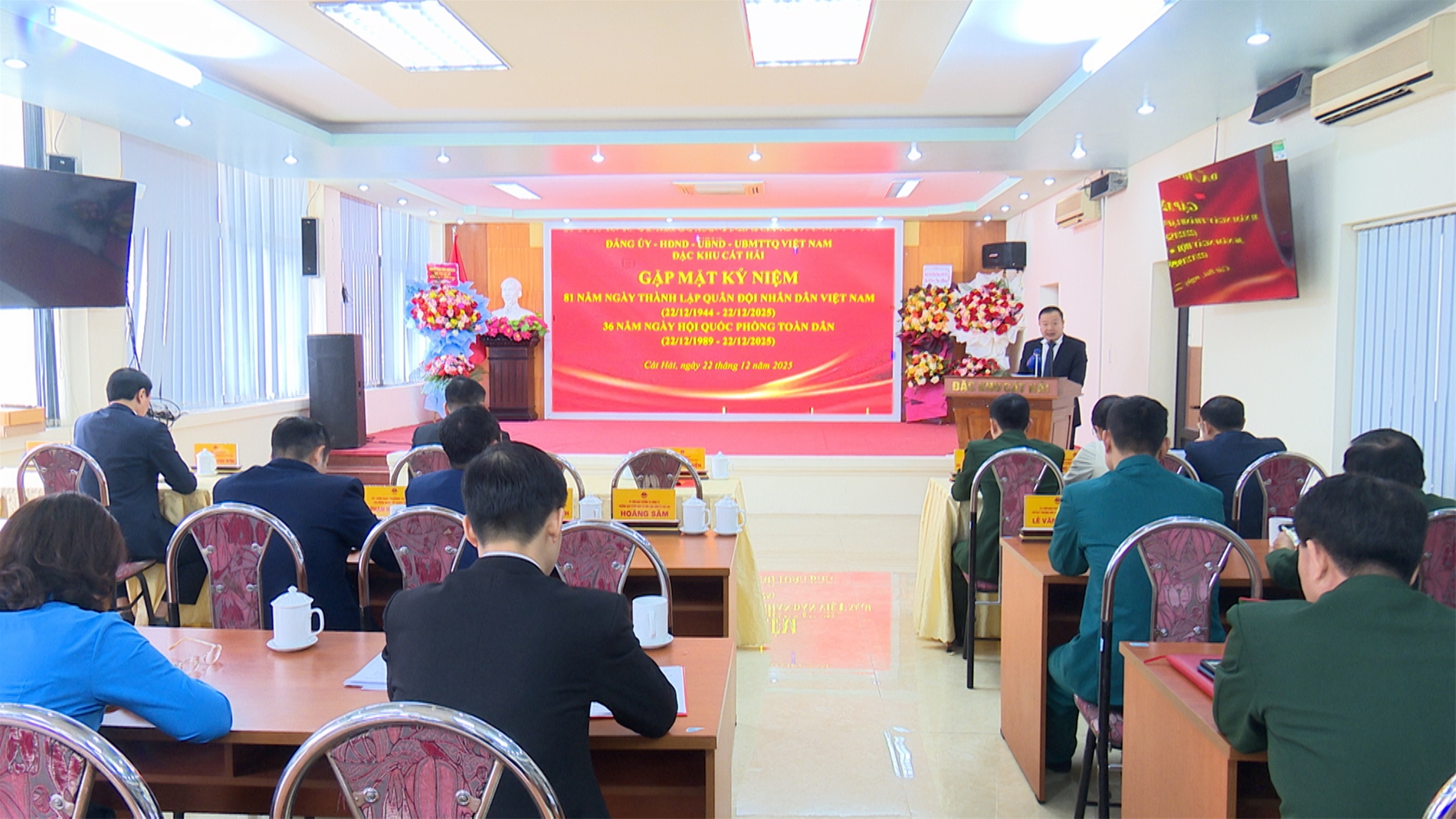 Nhân kỷ niệm 81 năm Ngày thành lập Quân đội Nhân dân Việt Nam (22/12/1944 – 22/12/2025); 36 năm Ngày hội Quốc phòng toàn dân (22/12/1989 – 22/12/2025). Sáng ngày 22/12, Đảng ủy – HĐND – UBND – UBMTTQ Việt Nam đặc khu Cát Hải tổ chức gặp mặt các đồng chí cán bộ quân đội đã nghỉ hưu, nghỉ công tác trên địa bàn đặc khu có cấp bậc quân hàm cấp tá đến thượng tá và người có chức danh là chỉ huy, lãnh đạo đơn vị cấp tiểu đoàn và tương đương trở lên.