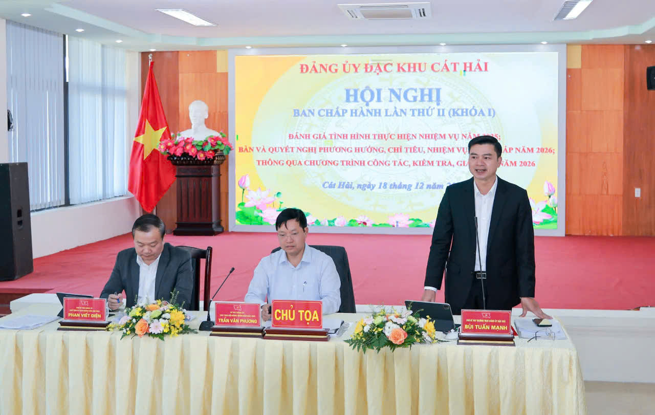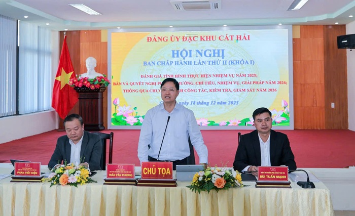 Sáng 18/12, BCH Đảng bộ đặc khu Cát Hải khóa 1, tổ chức hội nghị lần thứ 2 để đánh giá việc thực hiện nhiệm vụ năm 2025; đề ra nhiệm vụ, giải pháp năm 2026; thảo luận thông qua chương trình công tác, chương trình kiểm tra, giám sát năm 2026.