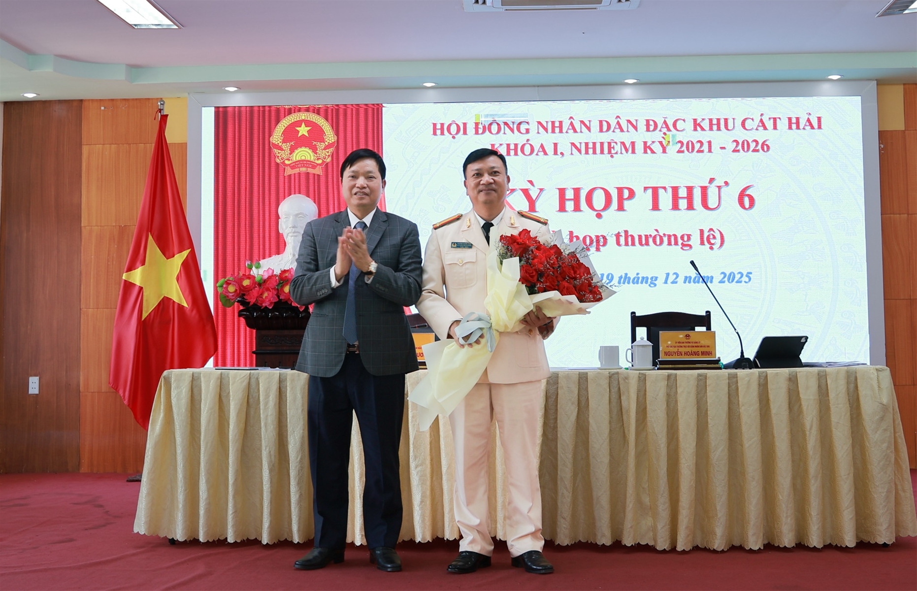 Kỳ họp cũng thông qua 7 nghị quyết gồm: Nghị quyết về giải quyết vấn đề phát sinh giữa kỳ họp thứ 5 và kỳ họp thứ 6 (kỳ họp thường lệ cuối năm) của HĐND đặc khu Cát Hải khóa I (nhiệm kỳ 2021-2026); Nghị quyết về kế hoạch phát triển kinh tế-xã hội đặc khu năm 2026; Nghị quyết về kế hoạch phát triển kinh tế-xã hội, quốc phòng-an ninh 5 năm 2026-2030;