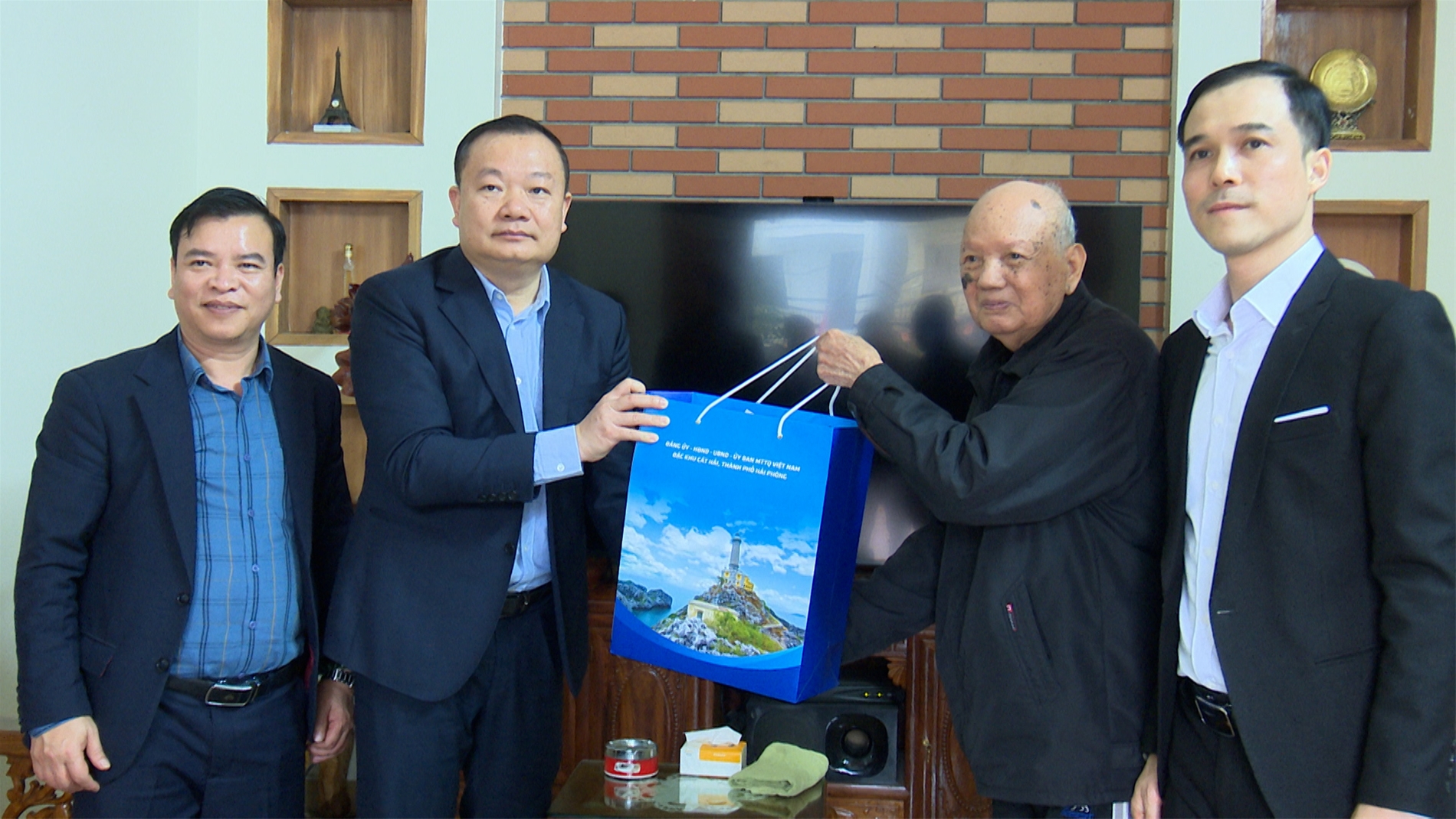 Đoàn do đồng chí Phan Viết Điện, Phó Bí thư đảng uỷ, chủ tịch UBND đặc khu Cát Hải làm trưởng đoàn đã đến thăm, tặng quà cho các đồng chí nguyên lãnh đạo huyện là đồng chí Phạm Hiệu - Nguyên Chủ tịch UBND huyện tại Thôn 2 Cát Bà; đồng chí Phạm Từ Hiến - Nguyên Chủ tịch UBND huyện Thôn 13 Cát Bà; đồng chí Hoàng Hồng Luân - Nguyên Phó Bí thư Thường trực Huyện ủy, Chủ tịch HĐND huyện Thôn 2 Cát Bà. đồng chí Bùi Thanh Tùng - Nguyên Bí thư Huyện ủy Cát Hải; đồng chí Phạm Quang Hiển - Phó Trưởng ban Ban Tổ chức Thành ủy (Nguyên Bí thư Huyện ủy, Chủ tịch HĐND huyện Cát Hải). Gia đình đồng chí Hoàng Bằng - Nguyên Phó Bí thư Huyện ủy, Chủ tịch UBND huyện - Thôn Bến; Gia đình đồng chí Lê Vĩnh Hiệu - Nguyên Chủ tịch UBND huyện - Thôn 2 Cát Bà.