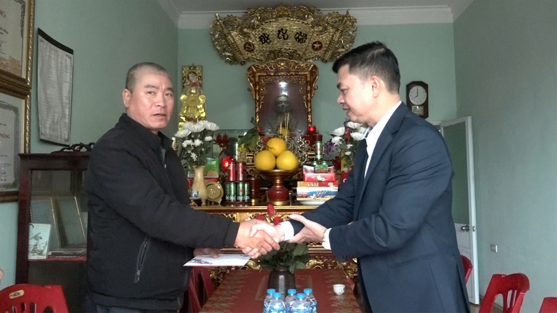 Thăm, tặng quà, chúc tết các gia đình chính sách trọng điểm Nguyễn Văn Khoái Thương binh 4/4 - Thôn 3 Xuân Đám; Ông Lê Văn Danh Bệnh binh 51% - Thôn 4 Xuân Đám; Ông Hoàng Văn Vân là người đại diện thờ cúng liệt sĩ Anh hùng LLVT Hoàng Thanh Loan - Thôn Minh Châu; Ông Vũ Gia Lộc Bệnh binh 70% - Thôn Minh Châu; Ông Vũ Hồng Thanh Bệnh binh 70% - Thôn Bến.