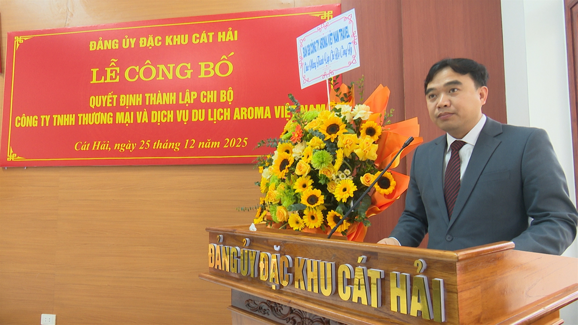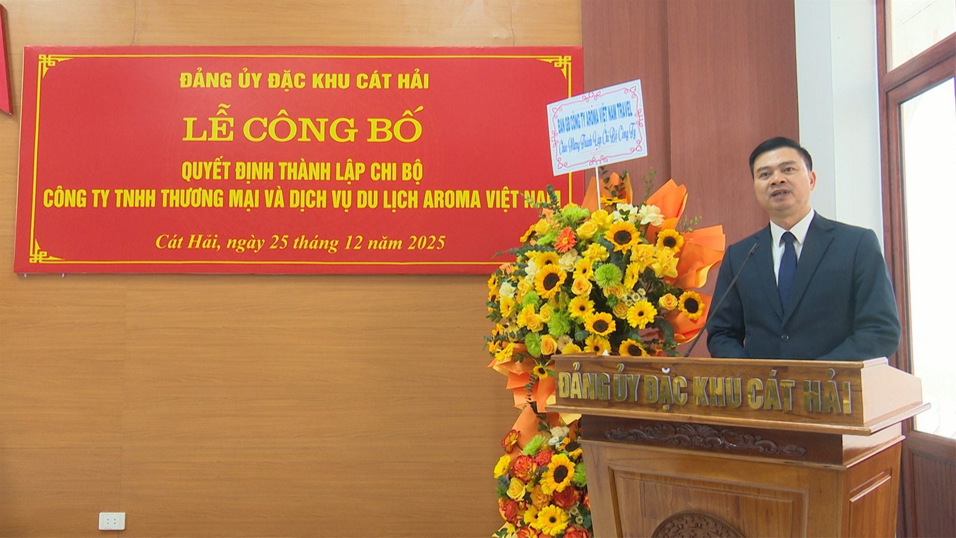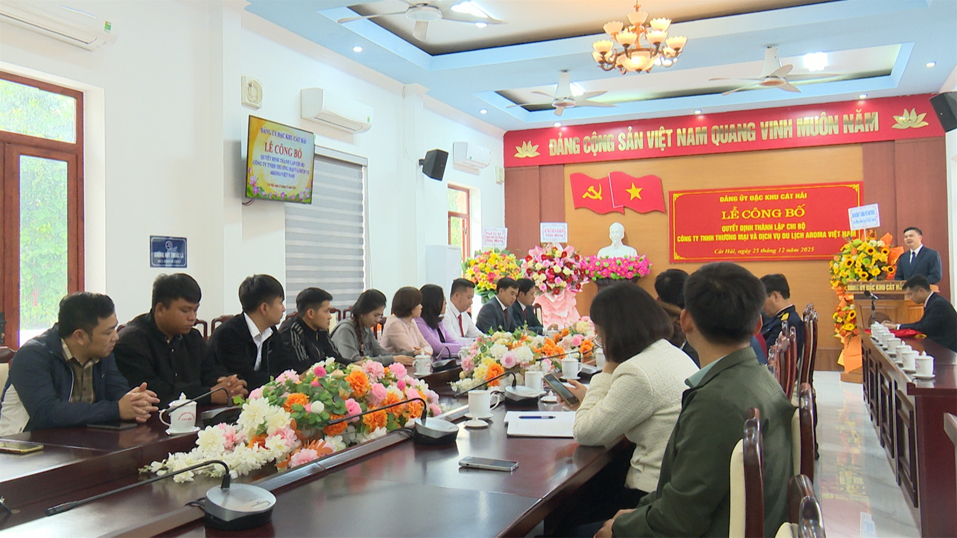 Thực hiện Nghị quyết số 28, ngày 10/11/2009 của Ban Thường vụ Thành uỷ về việc xây dựng, củng cố và phát triển tổ chức cơ sở Đảng, đoàn thể trong các loại hình doanh nghiệp ngoài nhà nước, hợp tác xã, đơn vị sự nghiệp ngoài công lập, chiều ngày 25/12, Đảng uỷ đặc khu Cát Hải tổ chức Lễ công bố Quyết định thành lập Chi bộ Công ty TNHH Thương mại và Dịch vụ Du lịch Aroma Việt Nam.