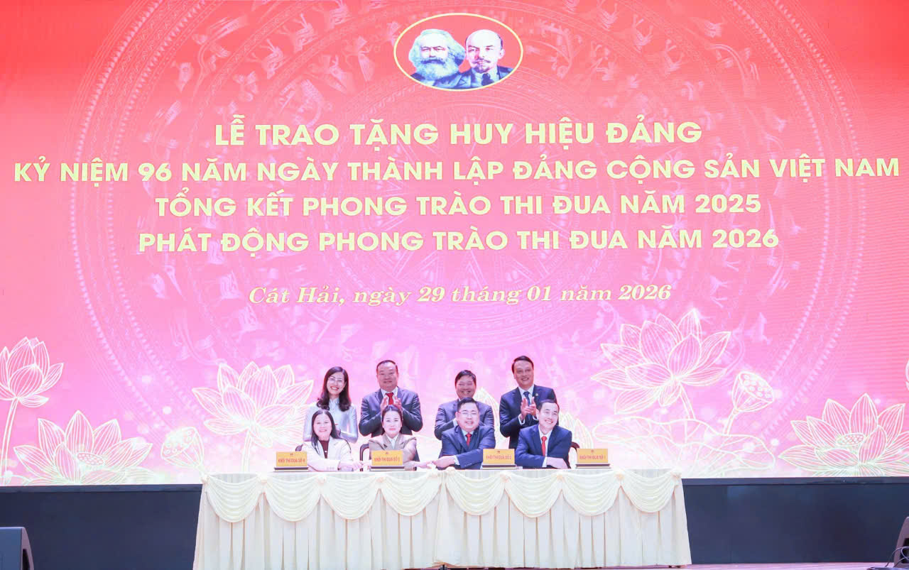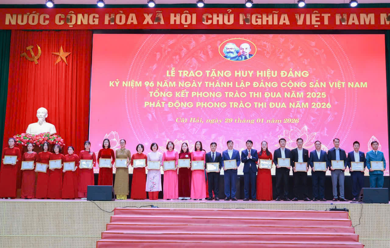 Sáng 29/1, Đảng uỷ - Hội đồng nhân dân - Uỷ ban nhân dân - Uỷ ban Mặt trận Tổ quốc Việt Nam đặc khu Cát Hải long trọng tổ chức Lễ trao tặng Huy hiệu Đảng; kỷ niệm 96 năm ngày thành lập Đảng Cộng sản Việt Nam 3/2, tổng kết phong trào thi đua năm 2025 và phát động phong trào thi đua năm 2026.