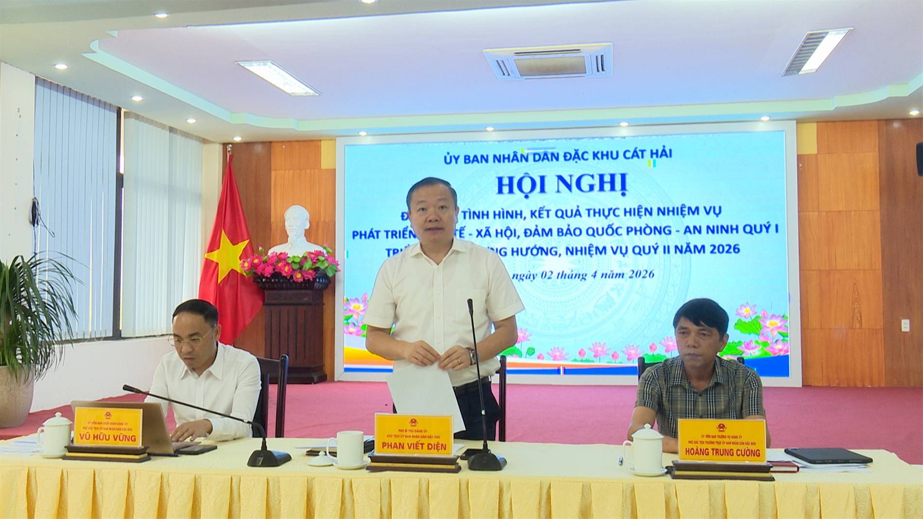 Quý 2, UBND đặc khu tập trung thực hiện 9 nhiệm vụ trọng tâm; trong đó chú trọng thực hiện đồng bộ, có hiệu quả các giải pháp đẩy mạnh công tác thu ngân sách; đảm bảo tiến độ công tác giải phóng mặt bằng, triển khai các công trình, dự án và giải ngân vốn đầu tư công theo kế hoạch. Chủ động, tích cực thực hiện các nhiệm vụ, giải pháp thực hiện chủ đề năm 2026 của thành phố và đặc khu; chuẩn bị các điều kiện cho mùa du lịch hè năm 2026 bảo đảm chủ động, sẵn sàng đáp ứng nhu cầu của du khách; tăng cường công tác quản lý nhà nước trên các lĩnh vực du lịch-dịch vụ, trật tự xây dựng, đô thị, vệ sinh môi trường, an toàn giao thông, nhất là tại khu trung tâm du lịch Cát Bà; đẩy mạnh cải cách hành chính, chủ động thực hiện hiệu quả các chỉ tiêu, tiêu chí của Bộ chỉ số phục vụ người dân và doanh nghiệp; tiếp tục chú trọng nâng cao chất lượng giáo dục; chủ động phối hợp với các sở, ngành thành phố đẩy nhanh tiến độ xây dựng hồ sơ đề nghị công nhận Cát Bà là Khu du lịch quốc gia; đề nghị công bố vùng du lịch sinh thái, nghỉ dưỡng, giải trí trên các vịnh thuộc quần đảo Cát Bà; thực hiện nghiêm túc kỷ cương, trật tự, nền nếp công vụ theo tinh thần “Đoàn kết - Trách nhiệm - Kỷ cương - Hiệu lực - Hiệu quả”; duy trì tốt công tác quân sự-quốc phòng địa phương, tăng cường công tác đảm bảo an ninh chính trị, trật tự an toàn xã hội, an ninh biển đảo của địa phương....
